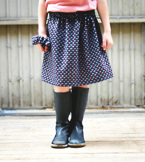 Rokje met "paperbag" in de taille. Het is een rimpelrokje met elastiek.