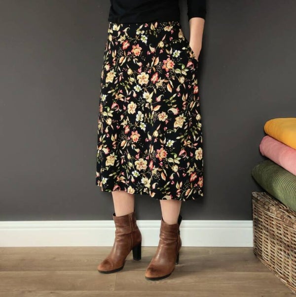We maken een rok uit tricot of viscose jersey met elastiek in de taille.
